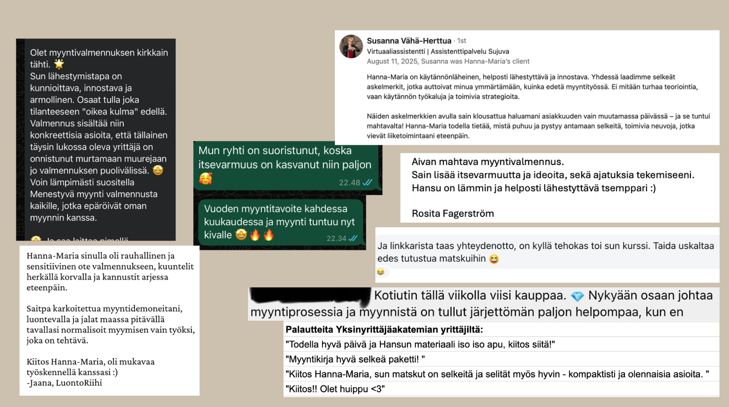 Haluat löytää oikeat asiakkaat, sanoittaa palvelusi selkeästi ja tehdä myynnistä luontevan osan arkea – ilman epävarmuutta.